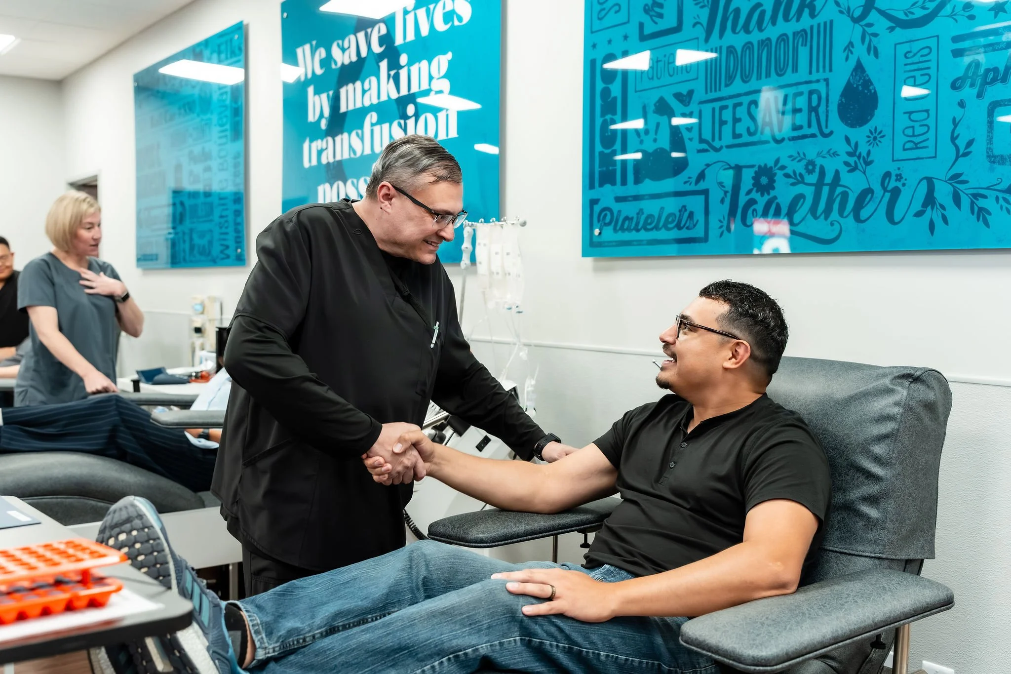 Our branding photography showcases the friendly, welcoming atmosphere at a local donor center and on a mobile donor coach.